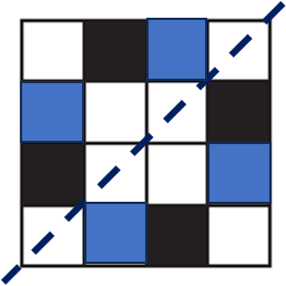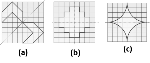 Q5. Copy the figure given here. Take any one diagonal as a line of symmetry and shade a few more squares to make the figure symmetric about a diagonal. Is there more than one way to do that? Will the figure be symmetric about both the diagonals?