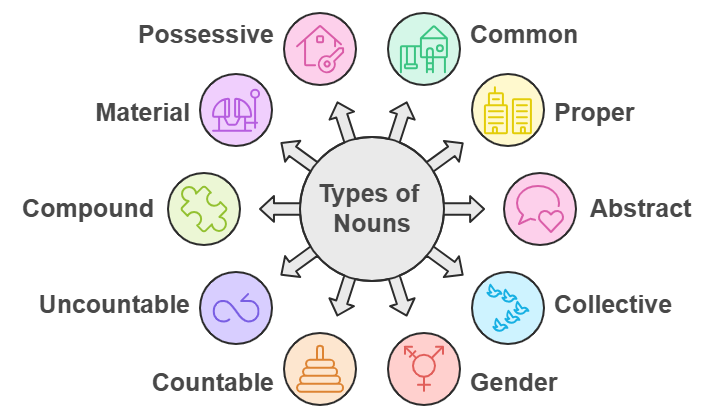 There are 11 types of nouns.