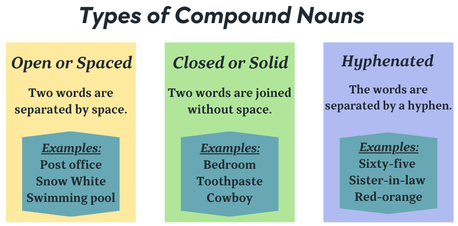 | Noun + Noun | Football, backbone, butterfly |